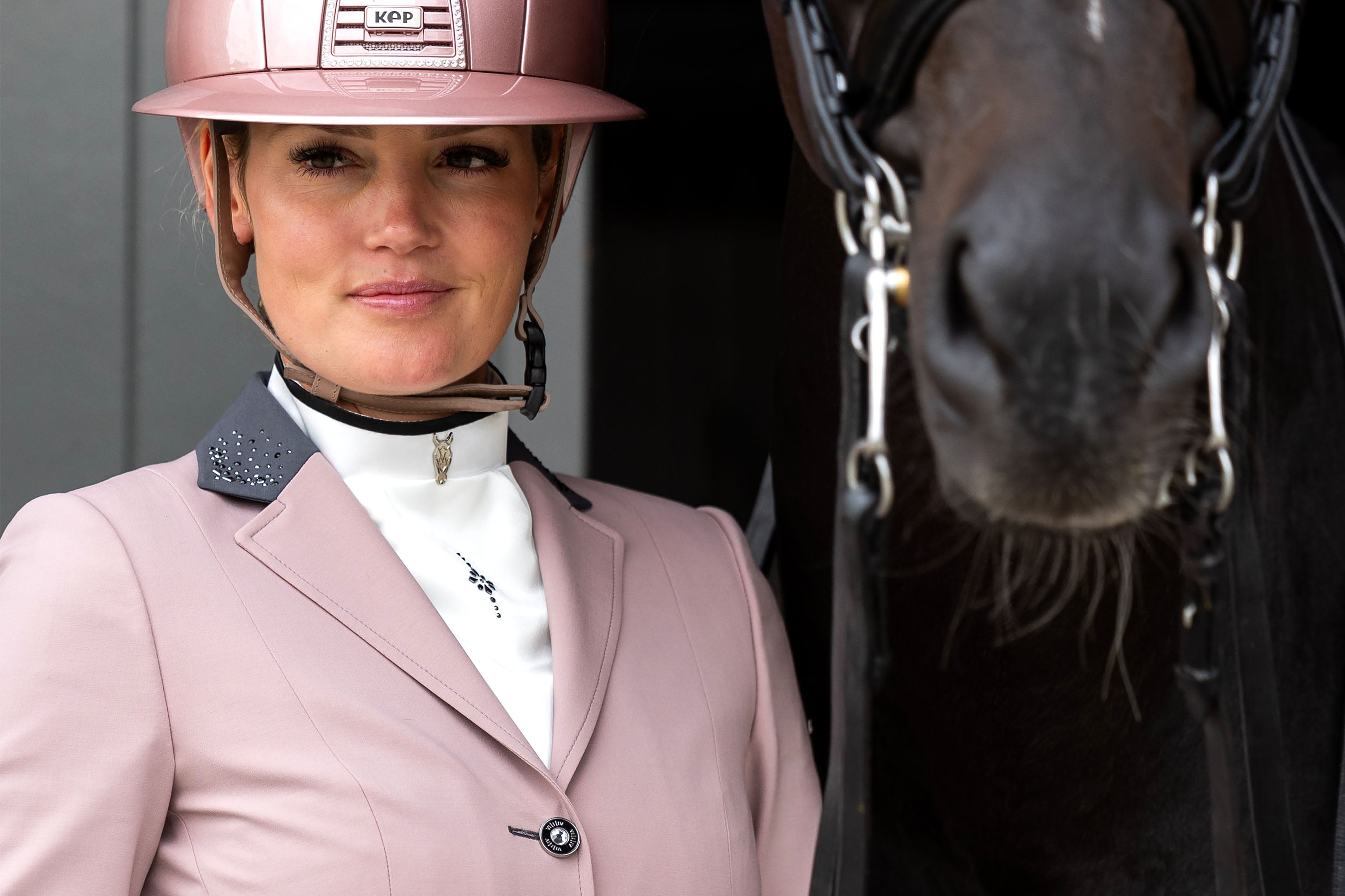 Plastron met Zwarte Bies & Poederroze Details