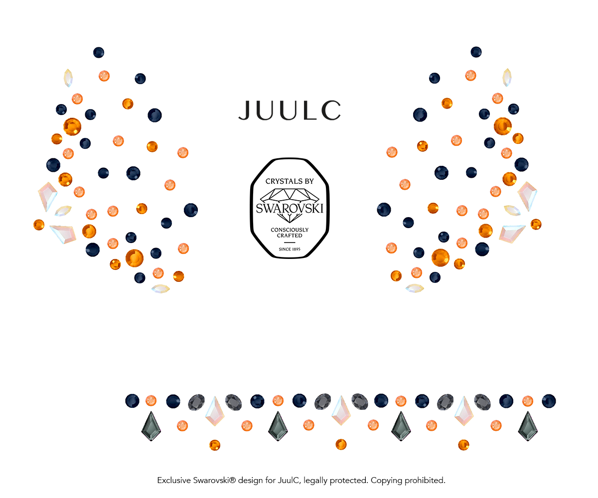 Add a subtle yet powerful sparkle to your competition outfit with our orange Swarovski® design in navy and crystal. This refined combination is created to perfectly complement the rest of your show look.